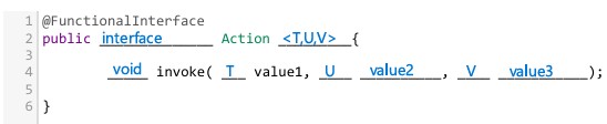 b) Schreiben Sie ein generisches Interface "Action", welches als Callback mit Übergabe von 3 Parametern dienen kann, in einer beliebigen Sprache.