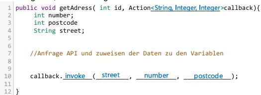 Für die Verwendung als Callback in der Sprache Java soll ein Interface (in diesem Fall s.g. Functional Interface) verwendet werden.