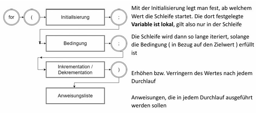 - For (meist angewendet, wenn die Anzahle der Durchläufe im Voraus bekannt ist)