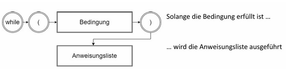 Die While-Schleife wird so lange durchlaufen, solang die Bedingung im Schleifenkopf wahr ist.