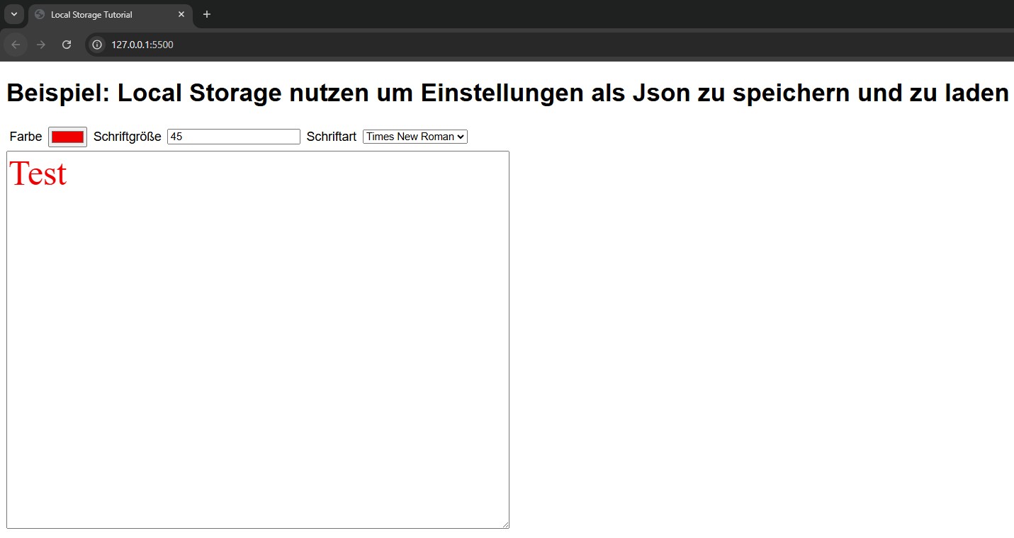 Der LocalStorage ist ein Möglichkeit lokal im Webbrowser Daten zu speichern. Dabei stehen etwa 5-10 MB Speicherplatz pro Domain zu Verfügung, was deutlich mehr ist als bei Cookies.